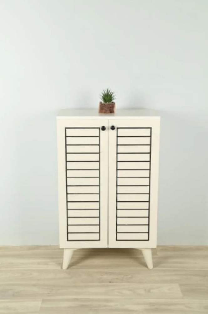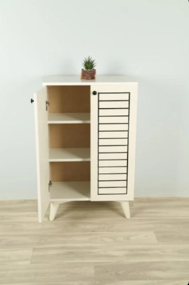تأتي جزامه مع أبواب تفتح لتكشف عن ثلاثة رفوف داخلية، مما يوفر لك مساحة واسعة لتخزين الأحذية والمقتنيات الشخصية بطريقة منظمة وسهلة الوصول. مع تصميمها الذكي، يمكنك وضع مختلف أنواع الأحذية، سواءً كانت كاجوال أو رسمية، دون أن تشغل مساحة كبيرة.