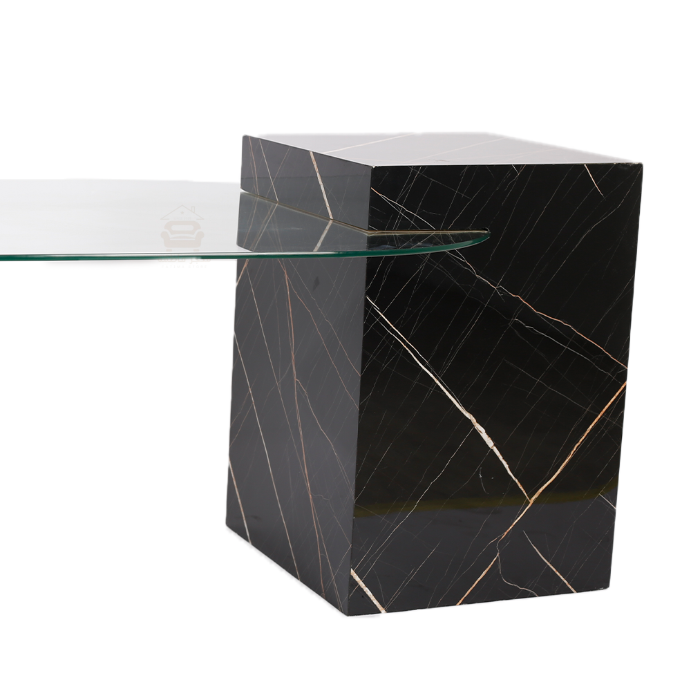 أضف لمسة من الفخامة والجمال إلى منزلك أو مكتبك مع طاولة تقديم بديل رخام بلون أسود مع أبيض مع زجاج شفاف!
