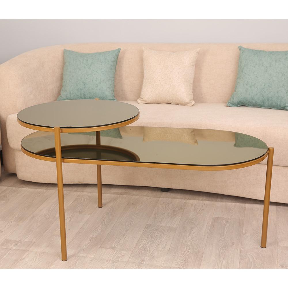 - تتميز السطح البيضاوي للطاولة بمرآة جميلة تعكس الإضاءة بشكل رائع. يخلق اللون الذهبي للمرآة تأثيرًا لامعًا ويضيف جمالًا فاخرًا إلى المكان. يمكن استخدام سطح المرآة لعرض الديكورات الزخرفية أو لتحسين الإضاءة في المكان.
