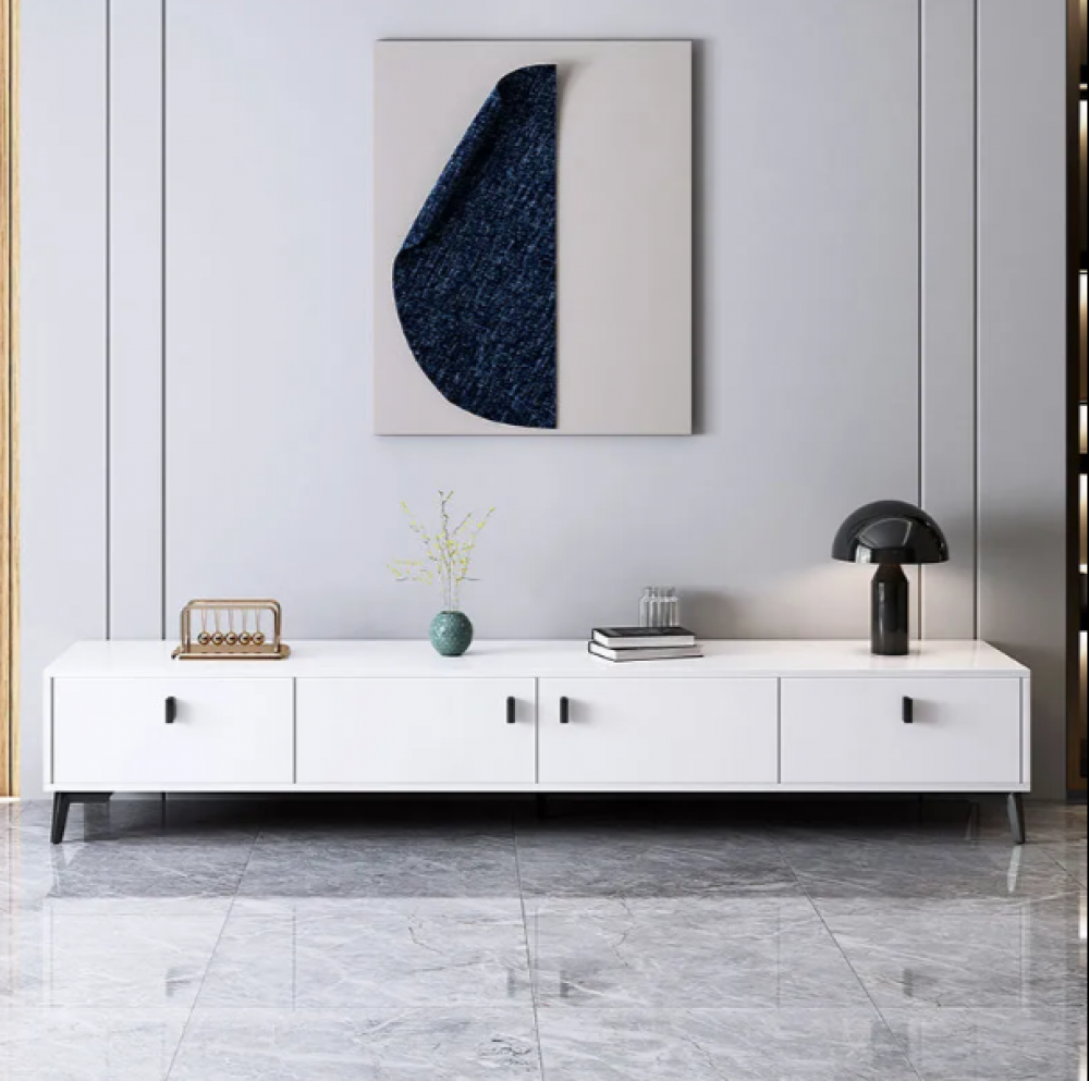 طاولة التلفزيون بتصميم بسيط هي قطعة أثاث عملية وعصرية تستخدم لوضع التلفزيون وتخزين الوسائط المتعلقة به