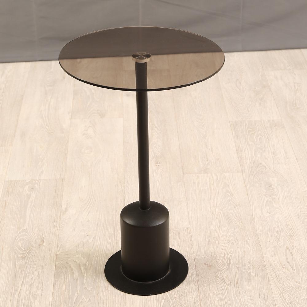 طاولة خدمة دائري لون اسود سطح زجاج بني بتصميم عصري