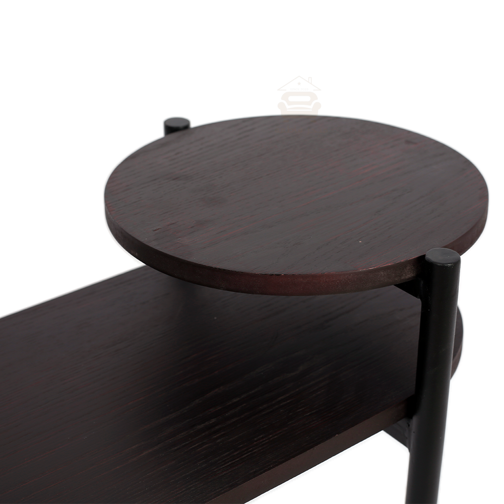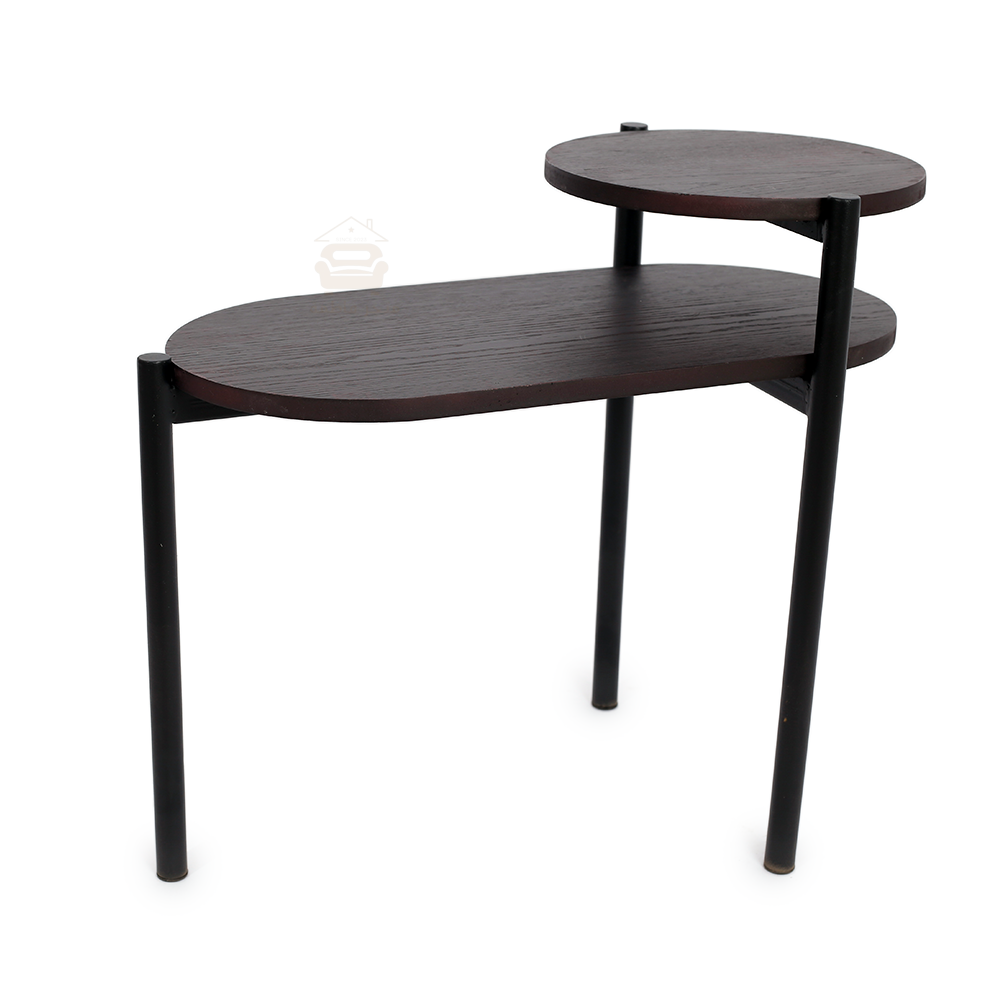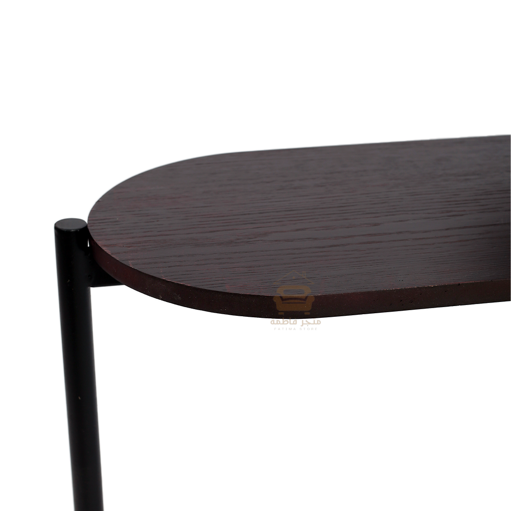 طاولة خدمة دورين قواعد حديد لون أسود وسطح خشب شكل بيضاوي ودائري لون بني غامق