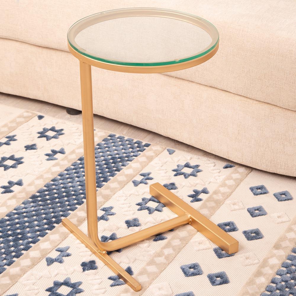 طاولة خدمة لون ذهبي سطح زجاج شفاف