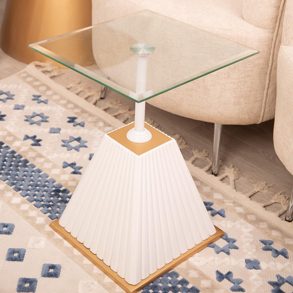 طاولة خدمة مربعه قاعدة خشب لون ابيض وذهبي