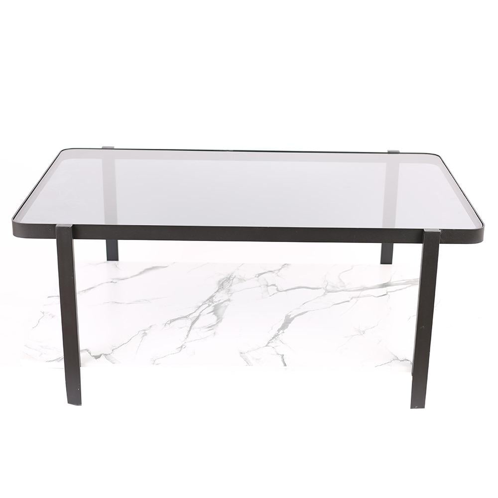 • طاولة قهوة دورين بسطحين متعددي الاستخدامات: سطح خشبي علوي وسطح زجاجي سفلي.