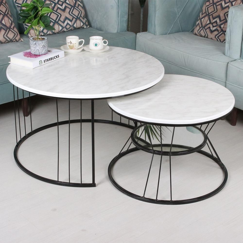 • طقم طاولات مكون من طاولتين دائريتين كبيرتين وأربع طاولات خدمة صغيرة.