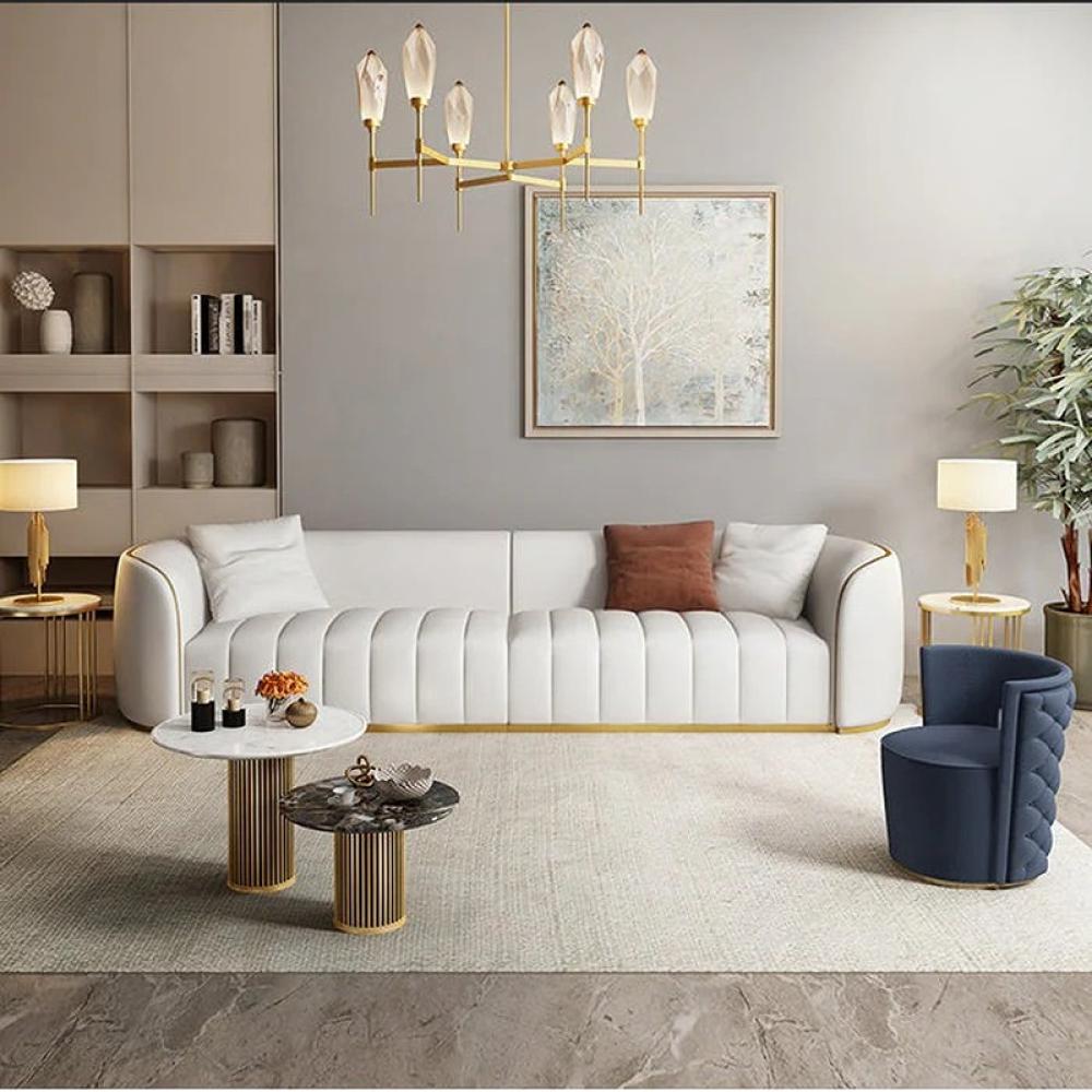 كنبة بتصميم عصري أنيق تضيف لمسة راقية ومشرقة إلى أي غرفة معيشة. صُنعت من هيكل خشب سويدي متين يضمن المتانة وطول العمر، ومغطاة بقماش مخمل فاخر يمنحها مظهراً فخماً وملمساً ناعماً. تحتوي وسائدها على حشوة بوليستر مع إسفنج صفا المدينة، مما يوفر راحة ودعماً ممتازين للاستخدام اليومي. تصميمها المتقن يجعلها قطعة مثالية لتجديد المساحة وإضفاء لمسة من الفخامة العصرية على المنزل.