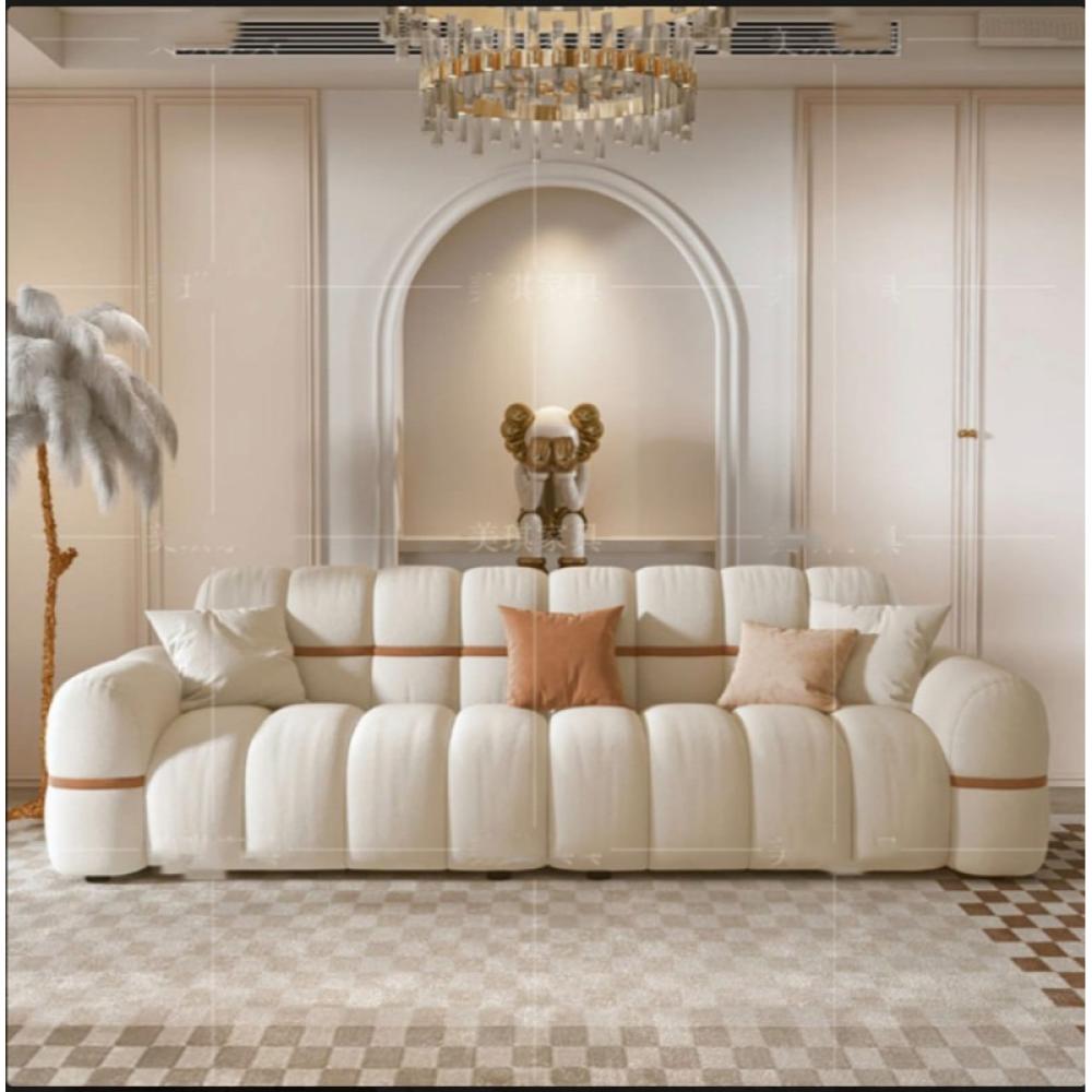 كنبة أنيقة بتصميم عصري تضيف لمسة من الفخامة والراحة إلى أي غرفة معيشة. صُنعت من هيكل خشب سويدي متين يضمن الاستخدام الطويل والموثوق، ومغطاة بقماش بوكليه فاخر يمنحها مظهراً راقياً وملمساً ناعماً. تحتوي وسائدها على حشوة بوليستر مع إسفنج صفا المدينة لتوفير دعم مريح وتجربة جلوس مثالية. تصميمها الراقي يجعلها قطعة مميزة تضفي لمسة عصرية وأنيقة على ديكور المنزل.