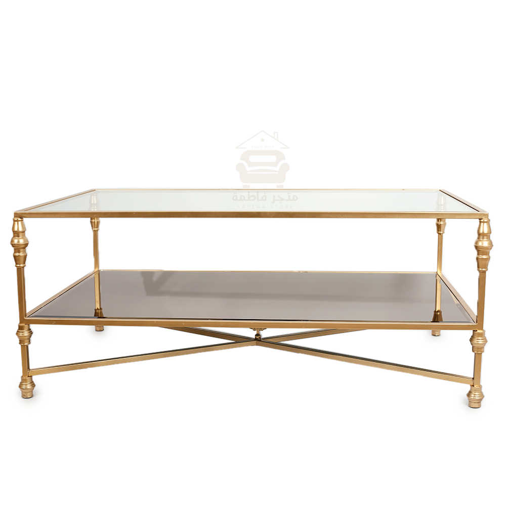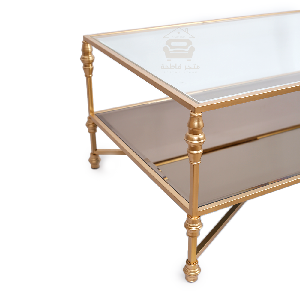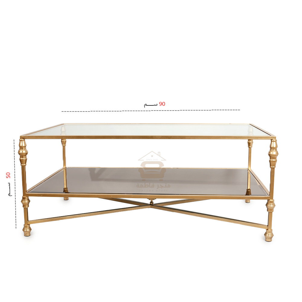 - اللون: ذهبي (قواعد حديدية) وشّفاف وبني (سطح زجاج)