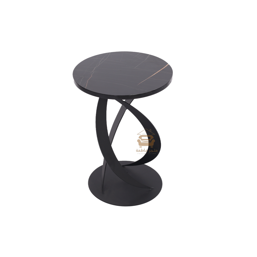 طاولة خدمة شكل دائري سطح بديل رخام لون أسود وقواعد حديد لون أسود