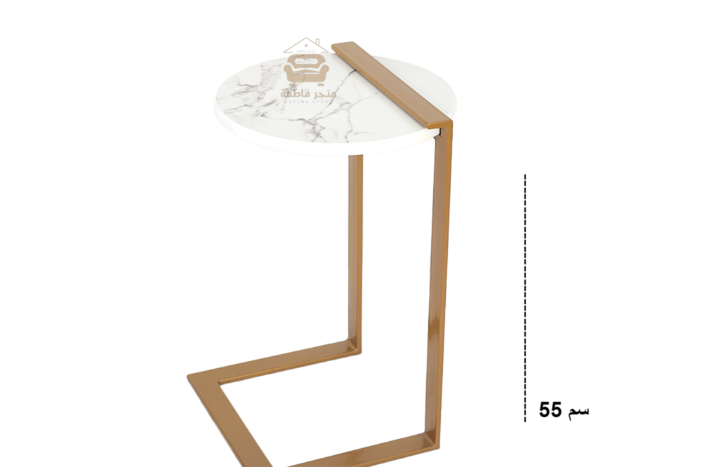 طاولة خدمة شكل دائري سطح خشب رخام لون أبيض وقواعد حديد لون ذهبي