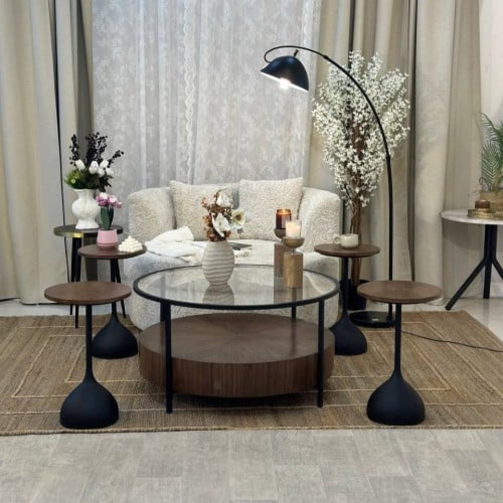 تتكون الطاوله سطح زجاج ودور ثاني خشب سويدي لون قشرة جوز لتضيف لغرفة المعيشة لمسه من الاناقة والفخامة