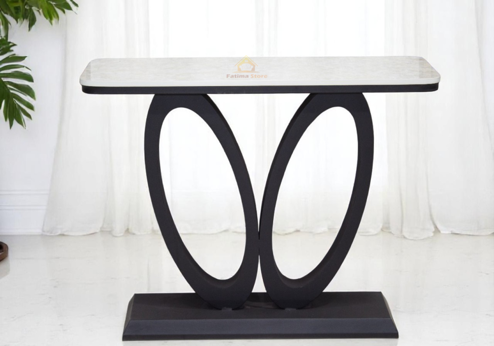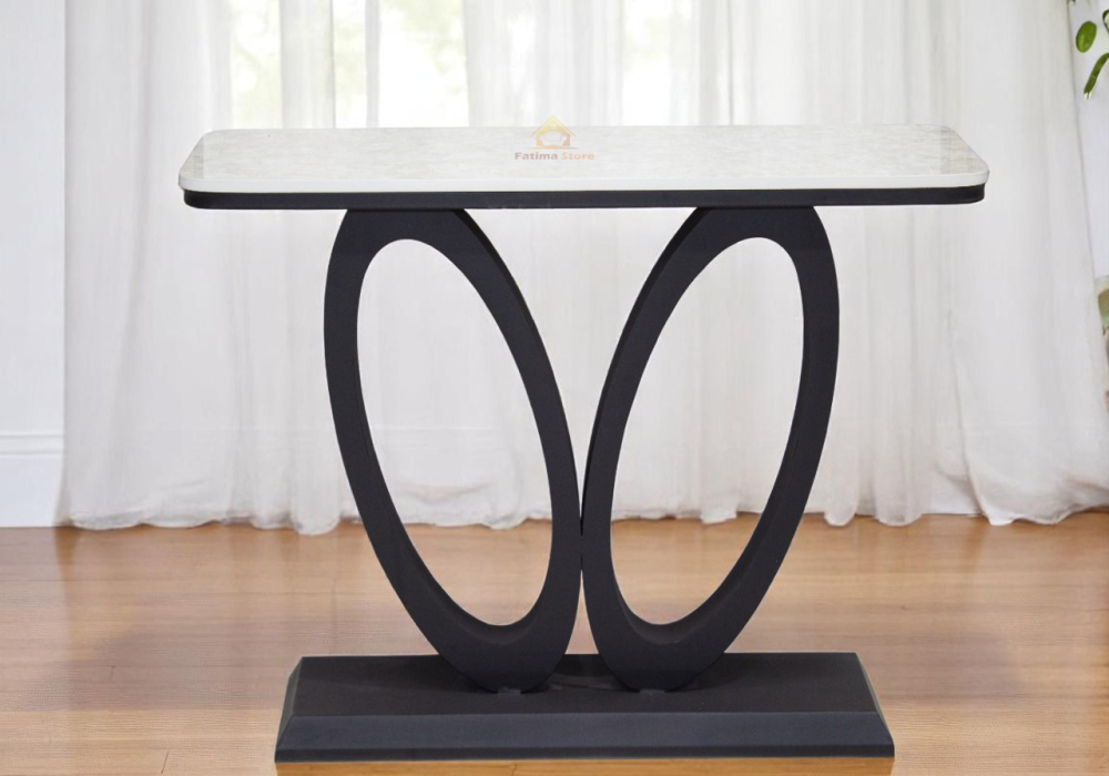 طاولة مدخل سطح بديل رخام قاعدة معدن اسود مطفي 120*40*90