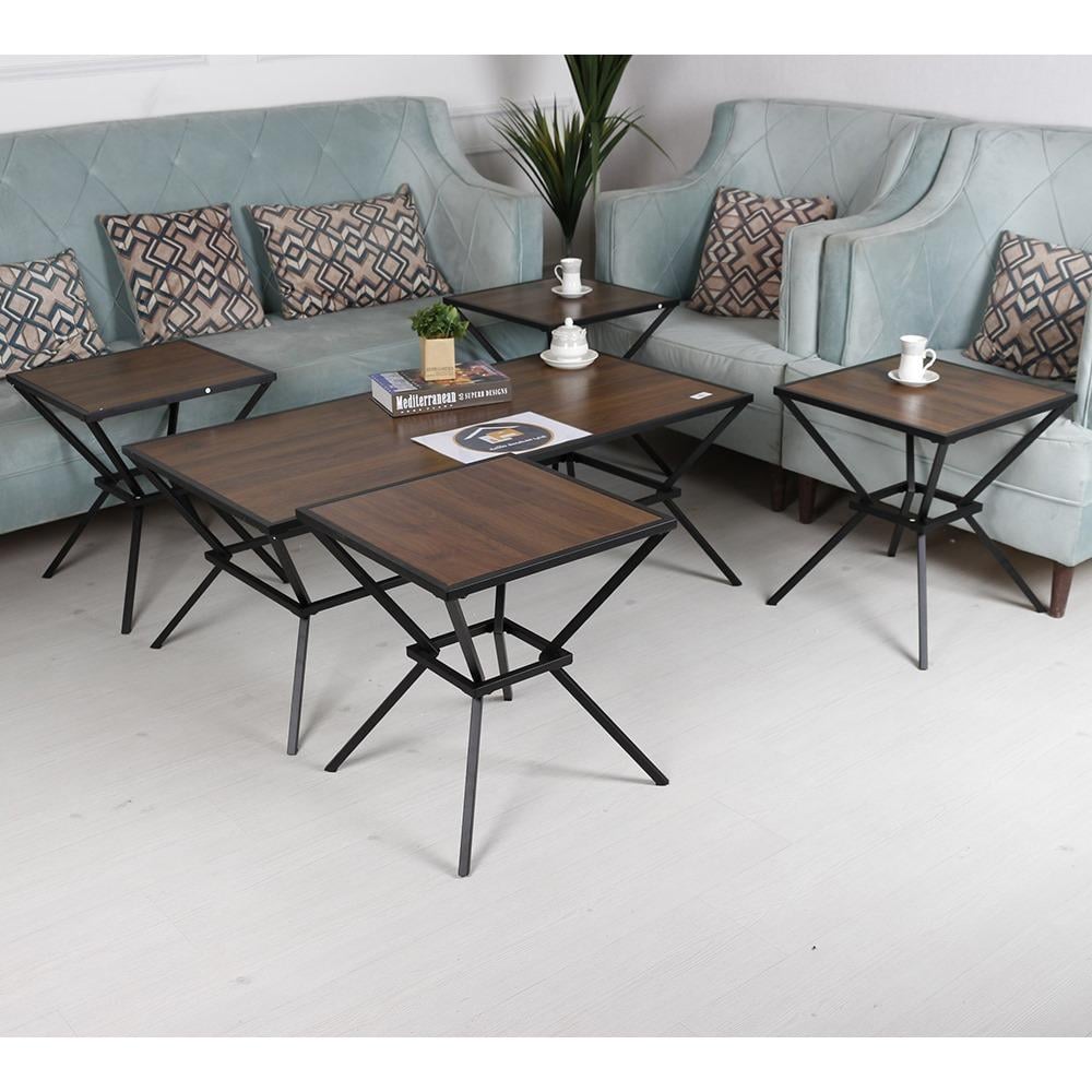 طقم طاولة سطح خشب مع 4 طاولات خدمة
