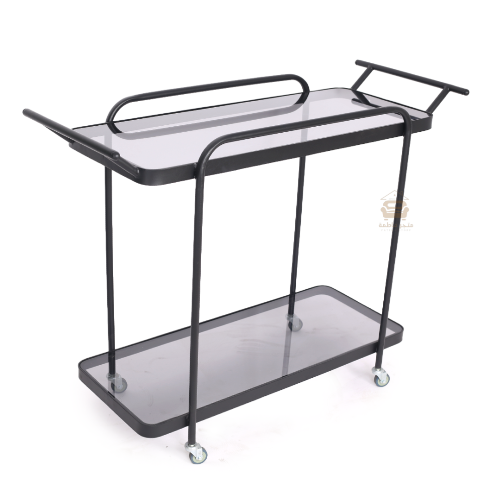 اطلب عربة تقديم دورين بقواعد حديدية مطفية و سطح زجاجي أسود شفاف مع مسكات طرفية اليوم واستمتع بتجربة تقديم الطعام والضيافة بأسلوب راقٍ!