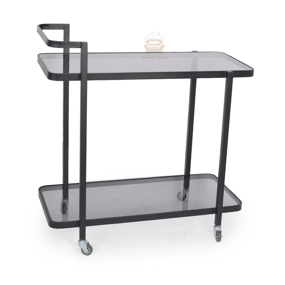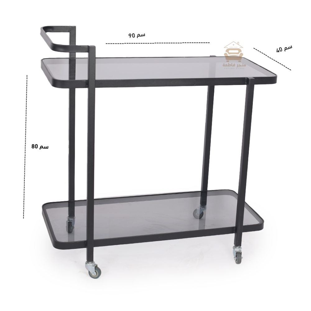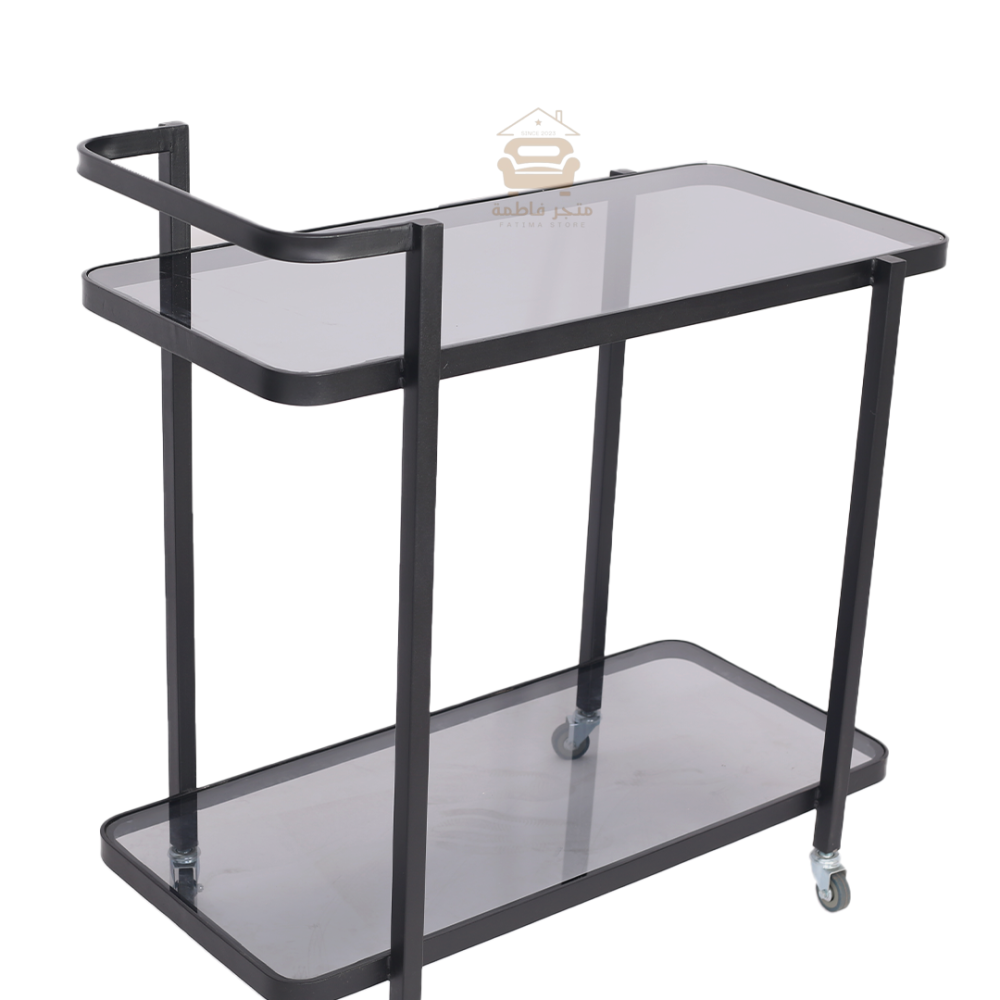 عربة تقديم دورين بسطح زجاج أسود شفاف وقواعد حديد مطفية