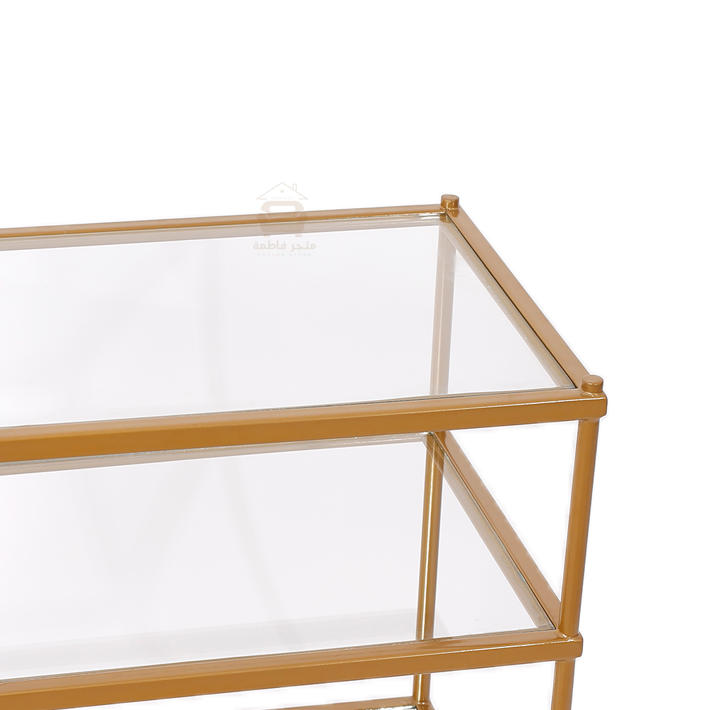 كمدينو لون ذهبي ثلاثة رفوف مع سطح زجاج شفاف: لمسة من الفخامة والأناقة