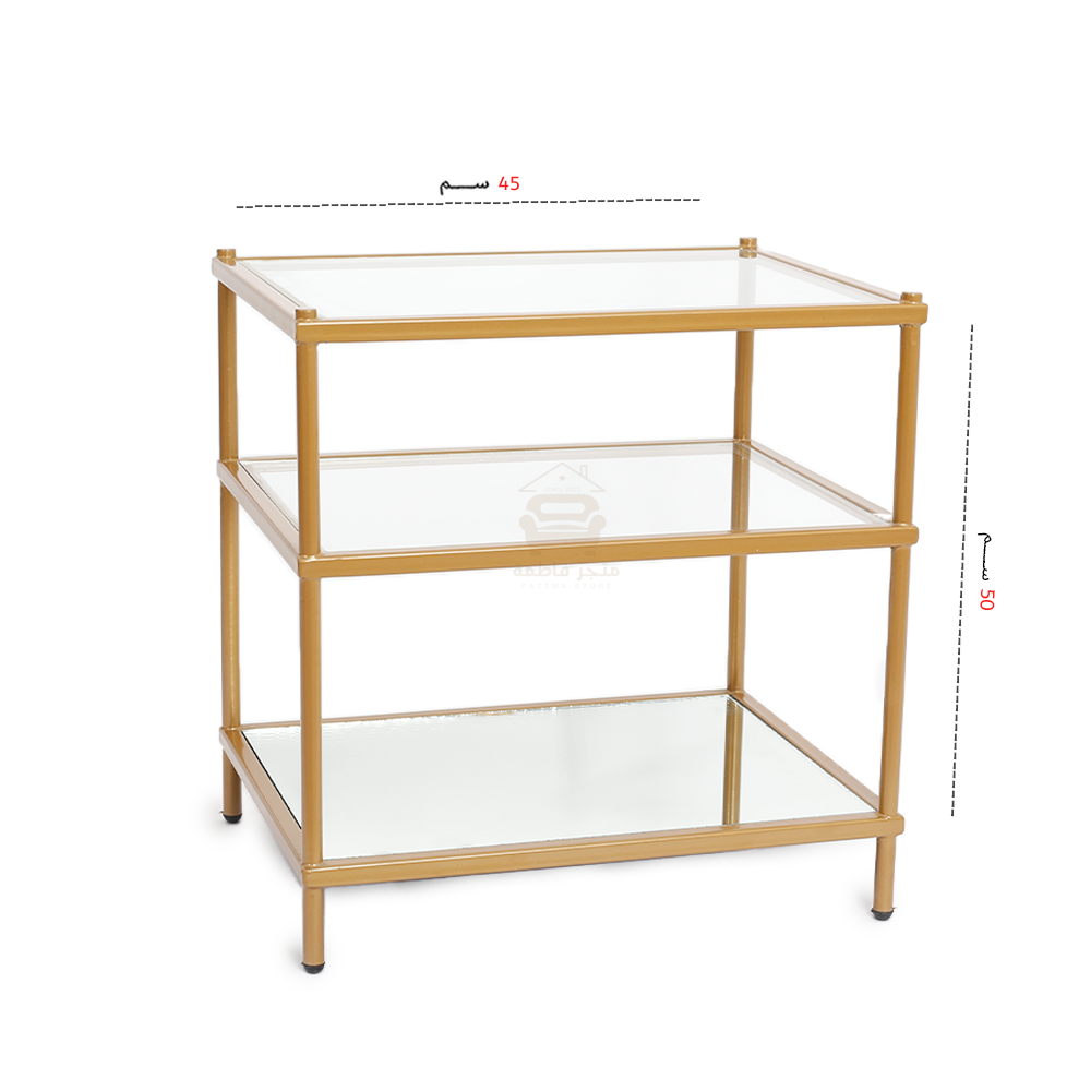 استمتع بتصميم فريد وعملي مع كمدينو لون ذهبي ثلاثة رفوف مع سطح زجاج شفاف!