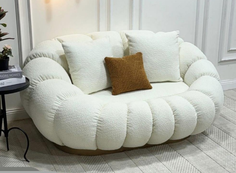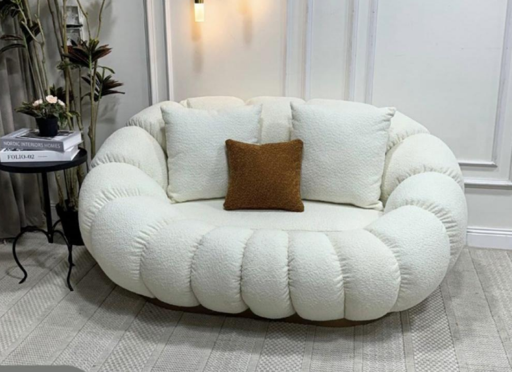 ختيار فاخر لتجديد ديكور منزلك وخلق مساحة مميّزة ، كنبة الغيمه أنيقة، مصنوعة من خامات عالية الجودة لضمان المتانة، وتأتي بتنجيد قماش فاخر مع بطانة إسفنجية ومساند ذراعين مريحة تدعم جلستك بالراحة اللازمة